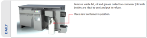 The pump out option on the Grease Boss 216 can be used to occasionally empty and flush out the unit, it may also reduce the frequency of external pump outs. You may want to do this to eliminate odour or sludge build up, however the usual daily maintenance on the grease trap is still required.
