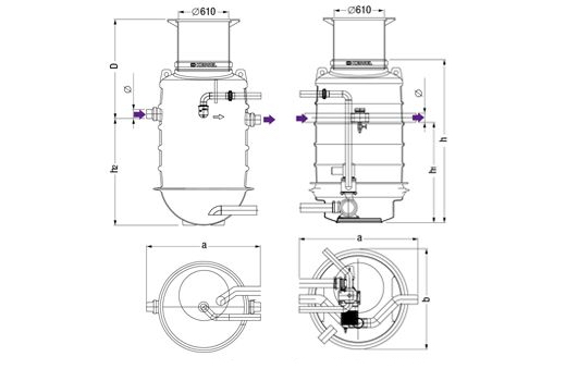 Direct disposal – Enables the extraction of the grease separator contents through a permanently installed disposal pipe without opening the tank.