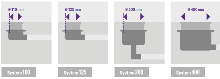 - Basement drains – high flows, heavy duty construction, available with integrated backwater protection