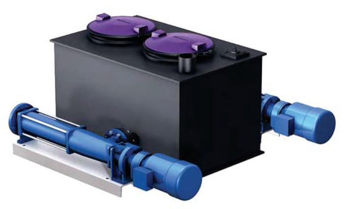 For this reason, positive displacement pumps (also known as screw pumps) are required for lifting greasy water that needs separation. MACTRAP provides special lifting stations from KESSEL for use where the grease separator is located higher than the collected wastewater from the kitchen. A screw pump pushes the wastewater into the grease separator, without any emulsification taking place.