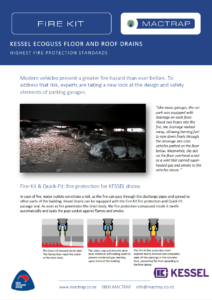 In case of fire, water outlets constitute a risk, as the fire can pass through the discharge pipes and spread to other parts of the building. Our drains can be equipped with the Fire-Kit fire and smoke protection insert or the Quick-Fit passage seal with integrated fire protection. As soon as fire penetrates the drain body, the fire protection compound inside it swells automatically and seals the pipe socket against flames and smoke.