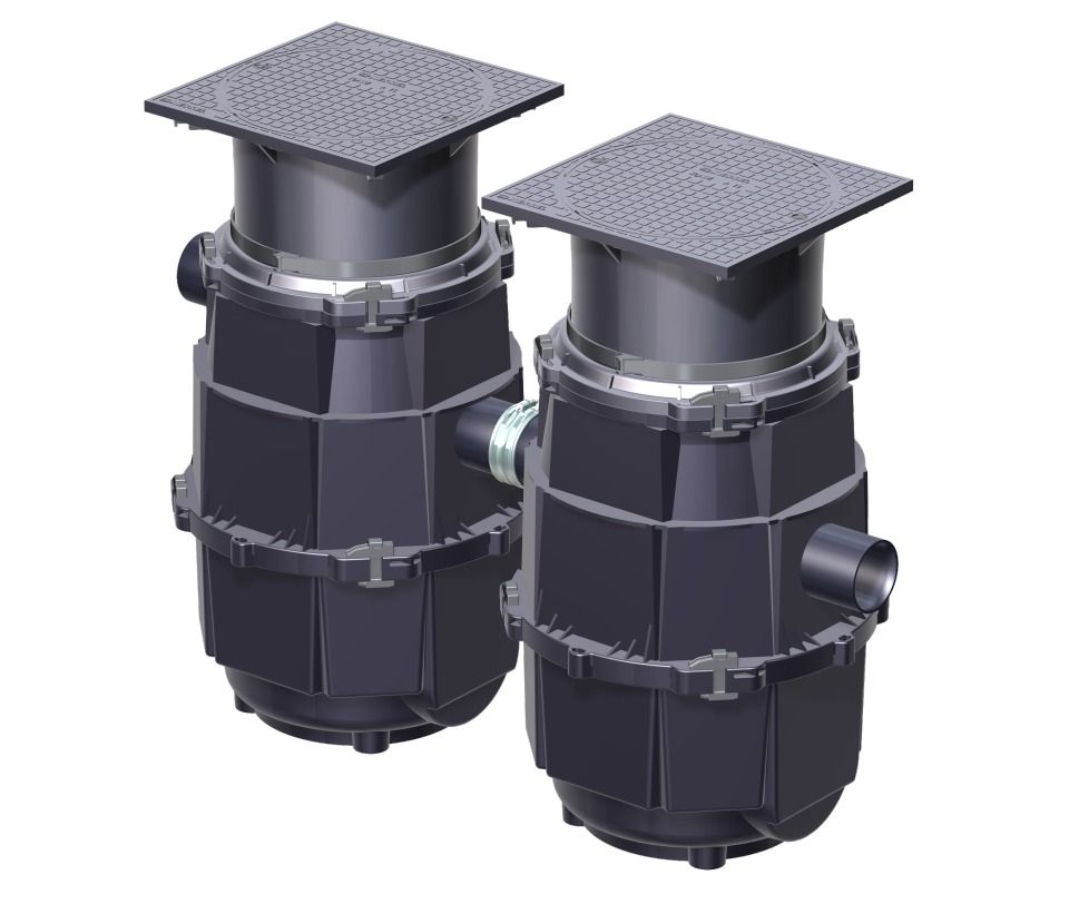The inground polymer sediment traps stand out with their compact design and can be set up directly where the sediment occurs. They traps have removable sediment containers and an outlet odour trap. These units are ideal for use with wash sinks.